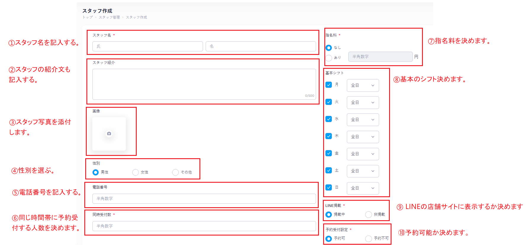 ※サロンボード連携の自動振り分け機能をお使いの店舗様は、サロンボードに設定しているスタッフ様の振り分け順の数字を合致させて下さい。こちらの数字が違いますと、連携ミスの原因となります。