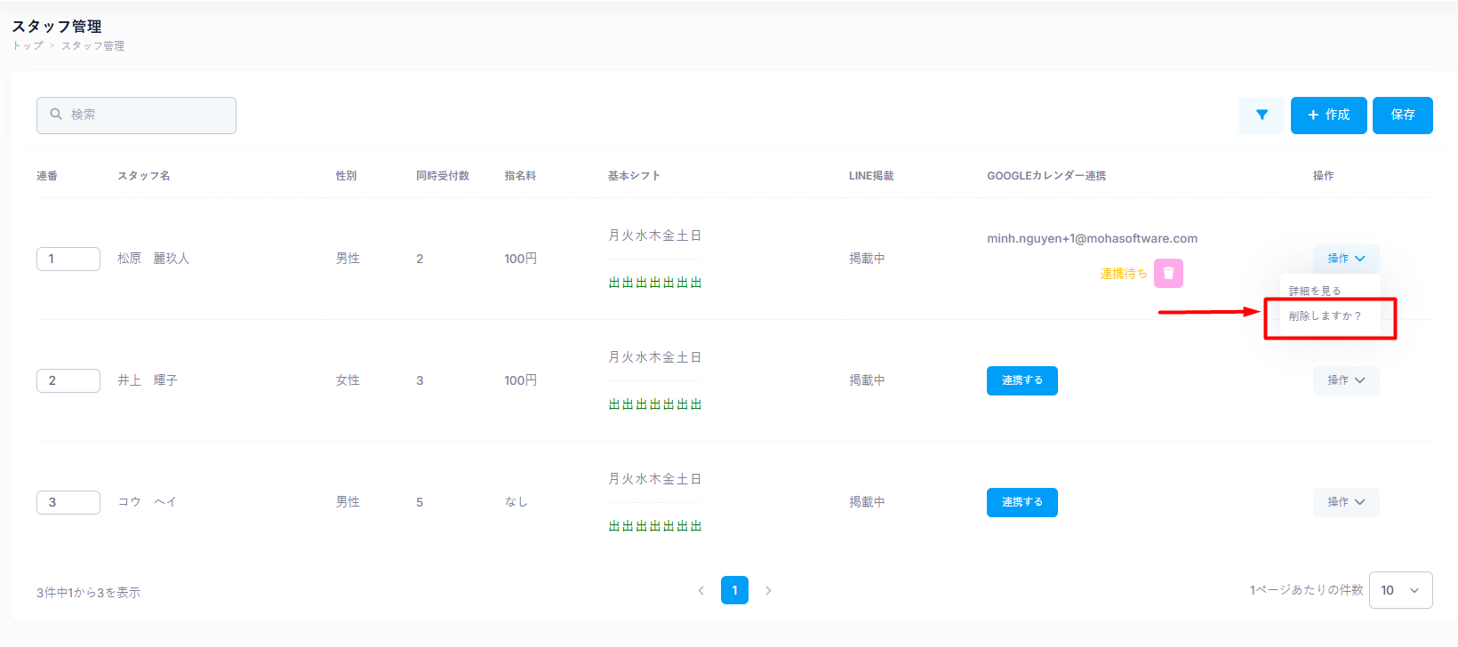 ・スタッフ一覧画面より編集・削除が可能です。