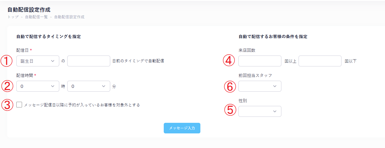 ◎自動配信する条件を設定します。※こちらは未設定でも可能です。